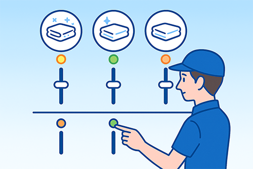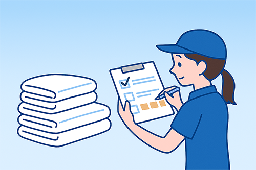 得意先のリネン類の汚れ具合に応じて、常に清潔保持が行えるように集配・洗濯をコントロールします。